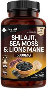 Shilajit Seamoss and Lions Mane Capsules 6000mg - High Strength Complex - 60% Fulvic Acid Shilajit, Irish Sea Moss, Lions Mane 100% Fruiting Body - Vegan, UK Made 120 Capsules