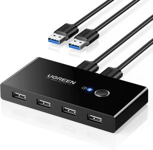 UGREEN USB 3.0 Switch 4 Port USB Switch Selector 5Gbps High-Speed Peripheral Sharing Switcher for 2 Computer Share Mouse Keyboard Compatible with Laptop Scanner Printer 2 Pack 4.92ft Cable