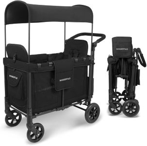 WONDERFOLD W2 Double Stroller Wagon – 2 Face-to-Face Seats, UV Canopy, Black